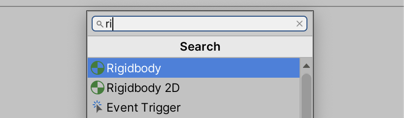 ri と入力すると Rigidbody がでてくるので、それを選択します