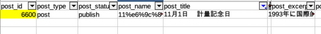 WP CSV Exporter でエクスポートしたCSVをLibreOfficeで開き、上書き更新したい記事を探す
